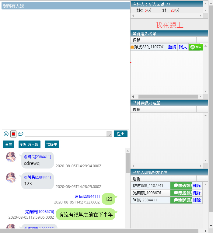 當客人加入S383好友後,進入聊天室有