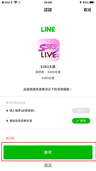 請按綠色"許可"按鈕